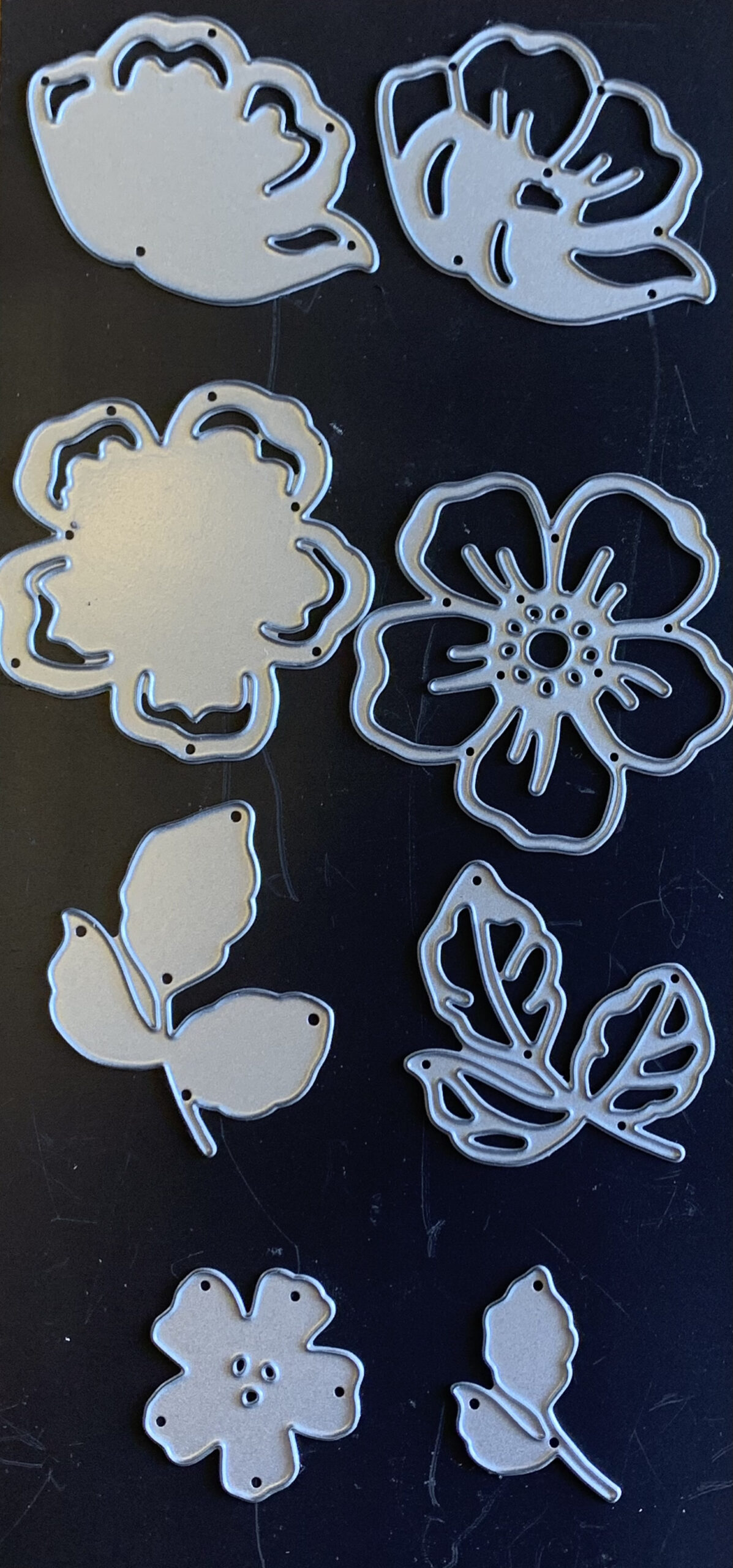 - Flowers: the dies on the left are background dies, the dies on the right are detailed dies for the top and the two at the bottom are just cute dies I layered together without any paper piecing.