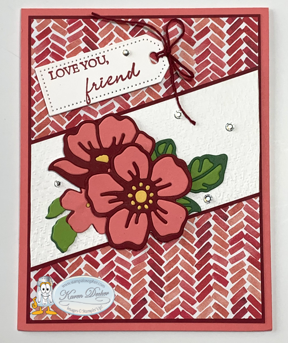 - Embellishments: 9″ Cherry Cobbler Twine, 5 Rhinestones