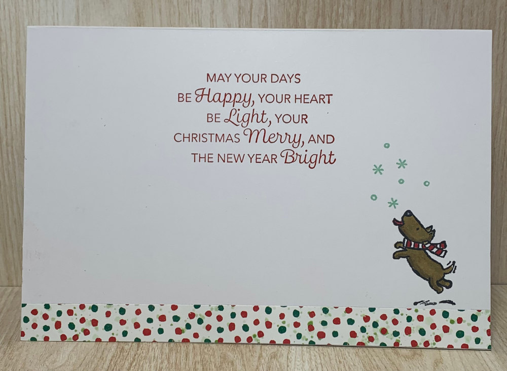 The inside greeting is my favorite for this year-“May your days be happy, your heart be light, your Christmas Merry and the new year bright”- from the Very Best Occasions Stamp Set, a great set for your stamp collection with greetings for birthday, love, gratefulness, thinking of you and Christmas!